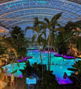 The Palm offers a more tranquil experience, set in lush tropical gardens with real palm trees and exotic plants. Here, guests can soak in thermal pools, unwind on sun terraces, and enjoy a serene atmosphere that balances relaxation with light water fun. It’s the ideal choice for couples, adults, or anyone looking to recharge in a beautiful, nature-inspired setting.