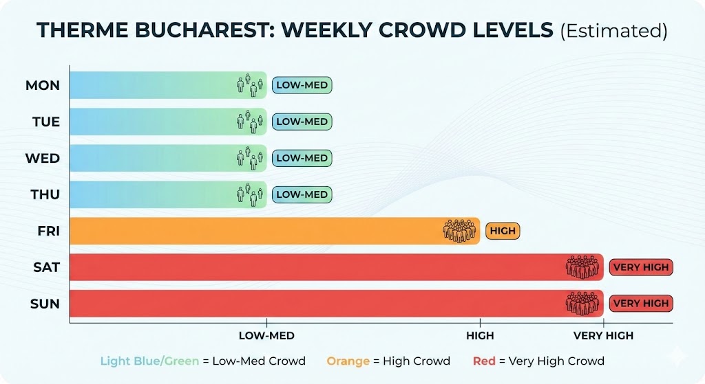 Expect significantly higher crowds at Therme Bucharest during Romanian public holidays, school holiday periods, and long weekends, when visitor numbers increase across all zones. Advance ticket booking is strongly recommended during these dates to secure your preferred entry time and avoid limited availability.